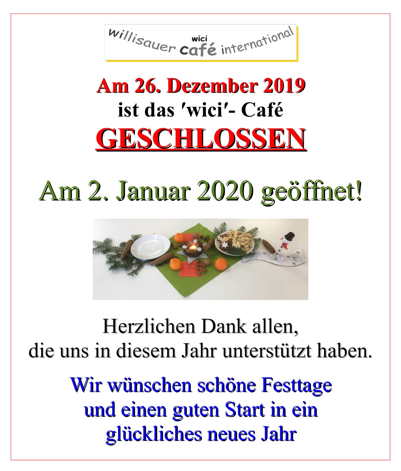 Ich freue mich auf ein interessantes fünftes ′wici-Jahr 2020, in dem wir viel unterstützen, helfen, informieren und gegenseitig austauschen können. Dabei soll die Gemütlichkeit, der Spass und die Pflege der freundschaftlichen Beziehungen über alle Sprach- und Kulturgrenzen hinweg nicht zu kurz kommen.